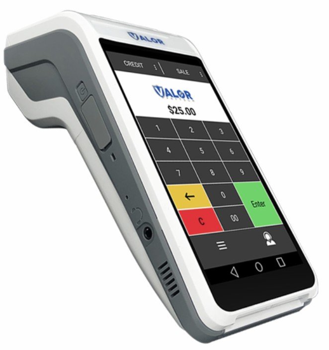 Compact, chip/swipe/tap, ValorPay app.